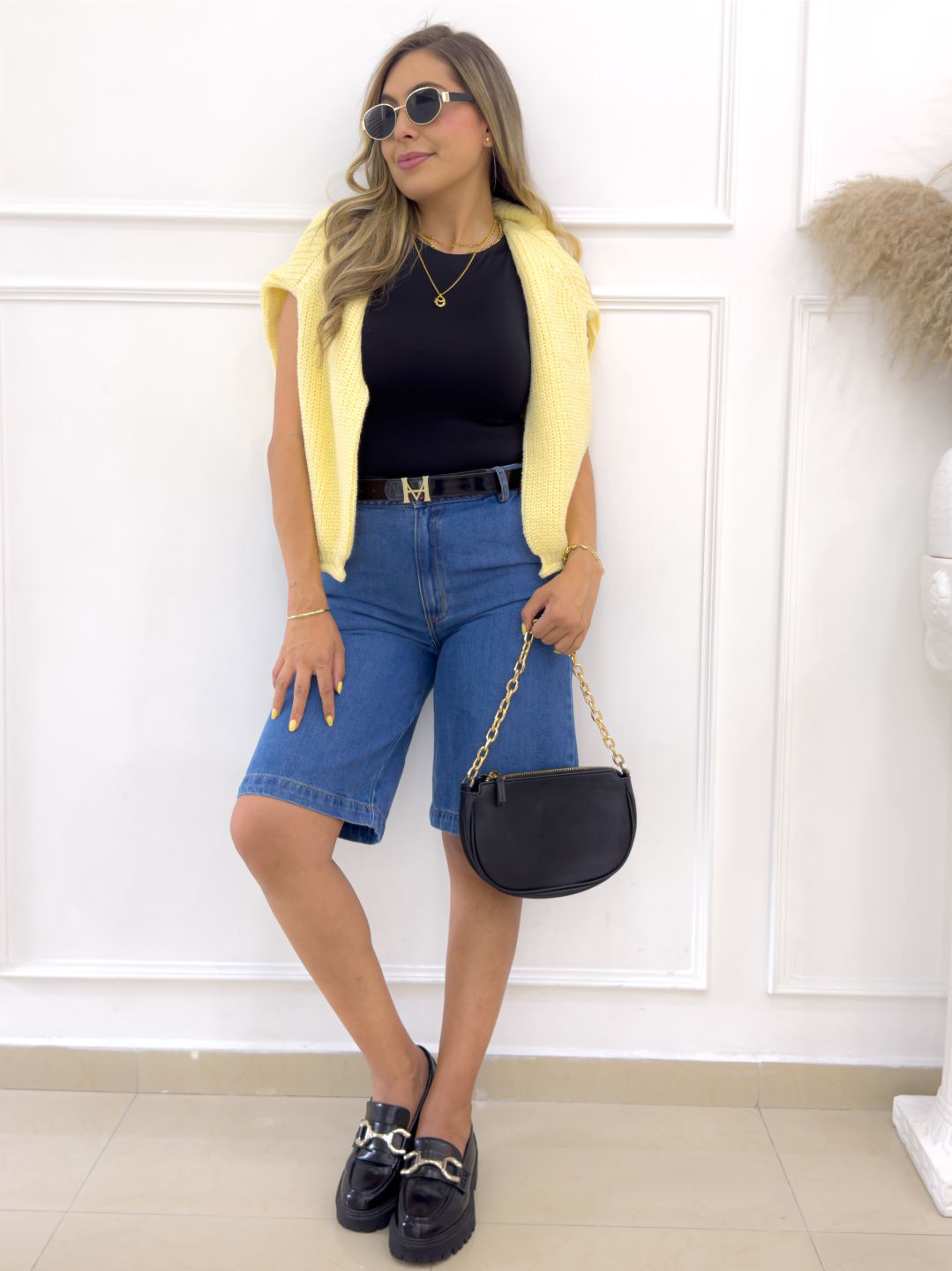 -bermuda de tiro Alto diseñado para ofrecer un look moderno y cómodo, su tela es de alta calidad y garantiza un ajuste impecable, ideal para estilizar un look casual y marcar la diferencia.