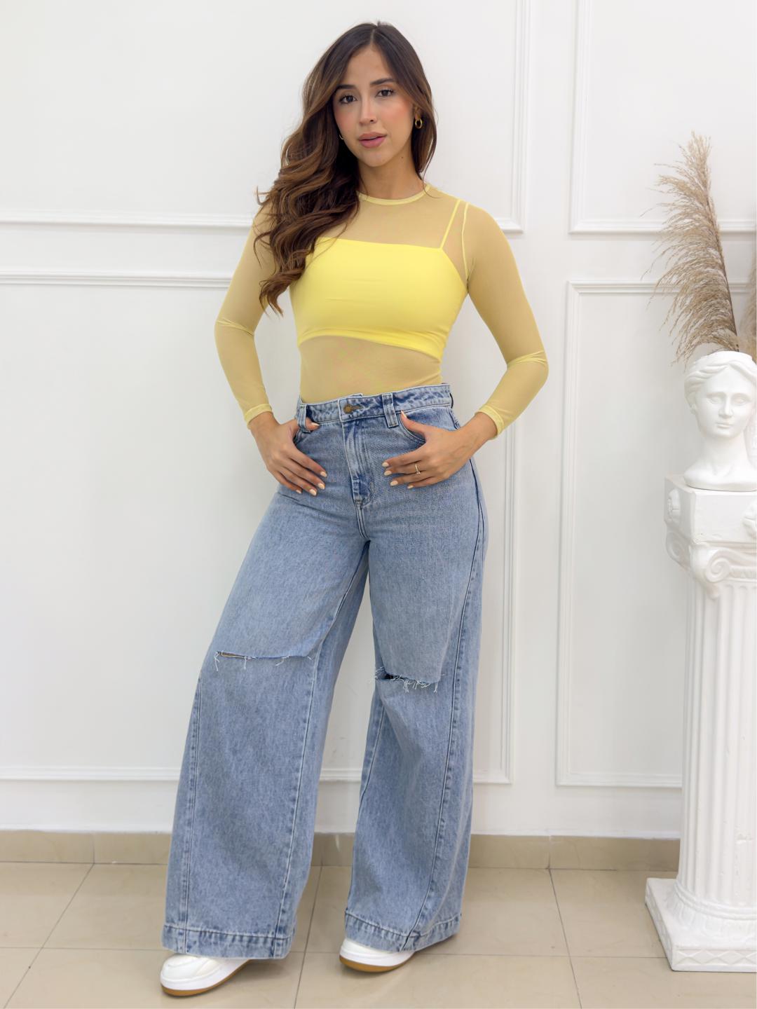 BLUSA MESH TOP AMARILLA