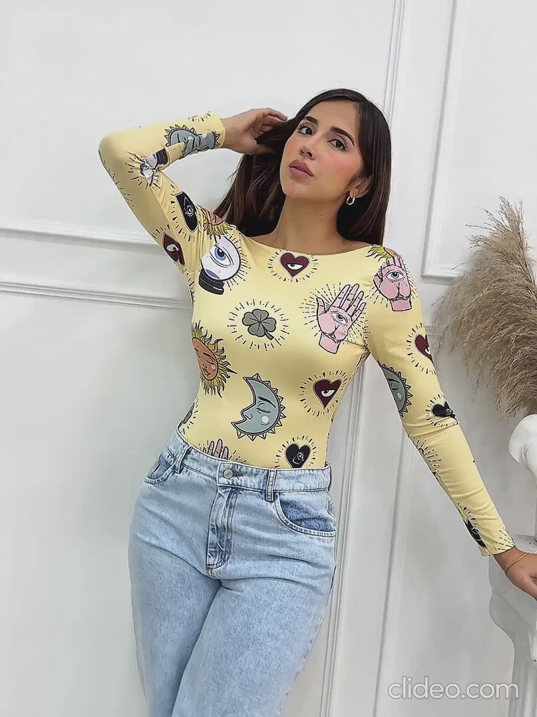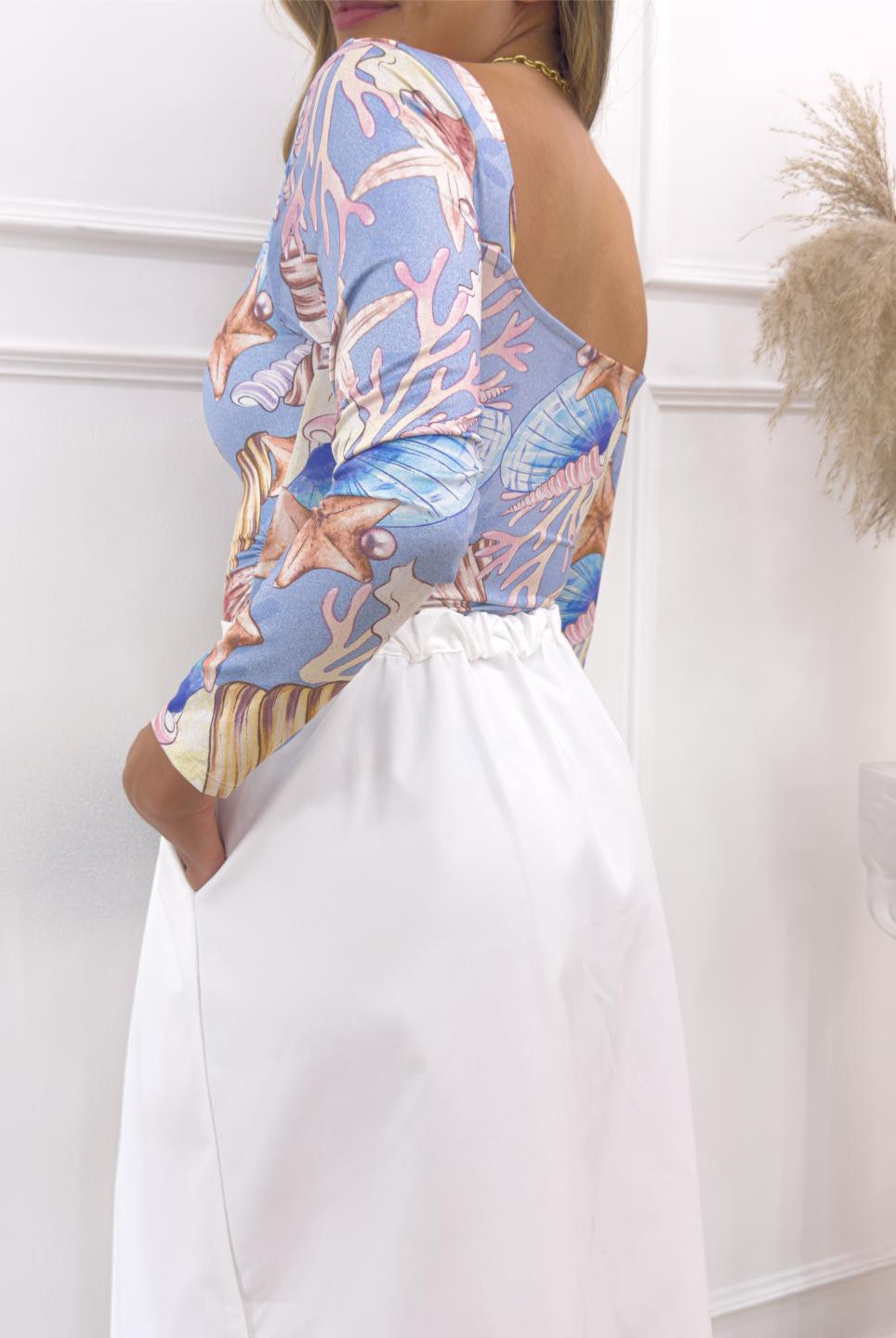 -Body manga larga escotado en la espalda con estampado, elaborada en un material muy suave al tacto y con mucha elasticidad.