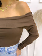 -La blusa Café bandeja para mujer es una prenda elegante y atemporal que realza los hombros y el cuello con un diseño femenino y sofisticado.