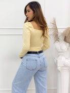 -Confeccionada en tela suave y ajustada que se adapta a la silueta, es ideal para combinar con jeans, faldas o pantalones de tiro alto.