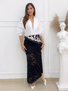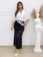 Destaca con elegancia y estilo con nuestra falda larga negra de encaje, una prenda sofisticada que combina sensualidad y distinción.