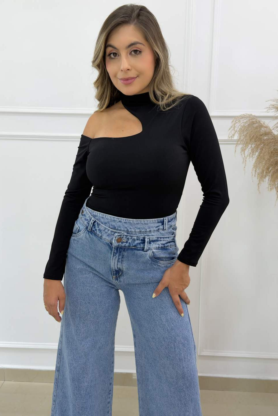 -Su diseño con escote cruzado en V estiliza la parte superior del cuerpo, mientras que las mangas con ligero volumen aportan elegancia sin perder comodidad.