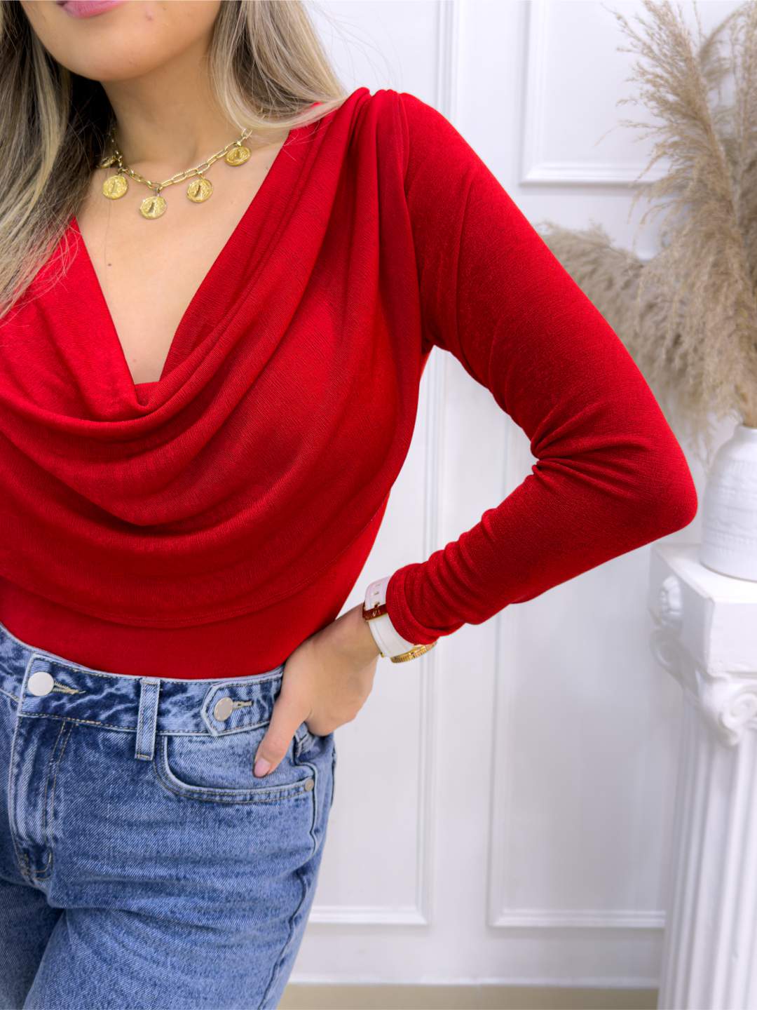 -Eleva tus looks con nuestro Body Blanco de escote drapeado, una prenda elegante, femenina y con un toque sofisticado que transforma cualquier outfit. Su diseño de caída suave en el pecho realza la figura sin esfuerzo, mientras que las mangas largas aportan estilo y comodidad.