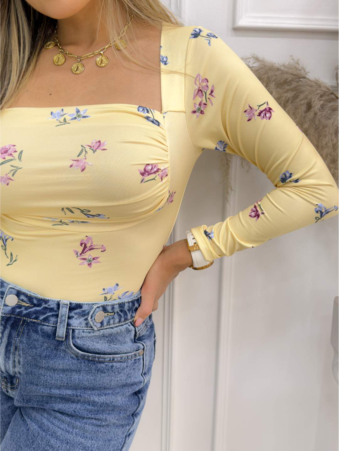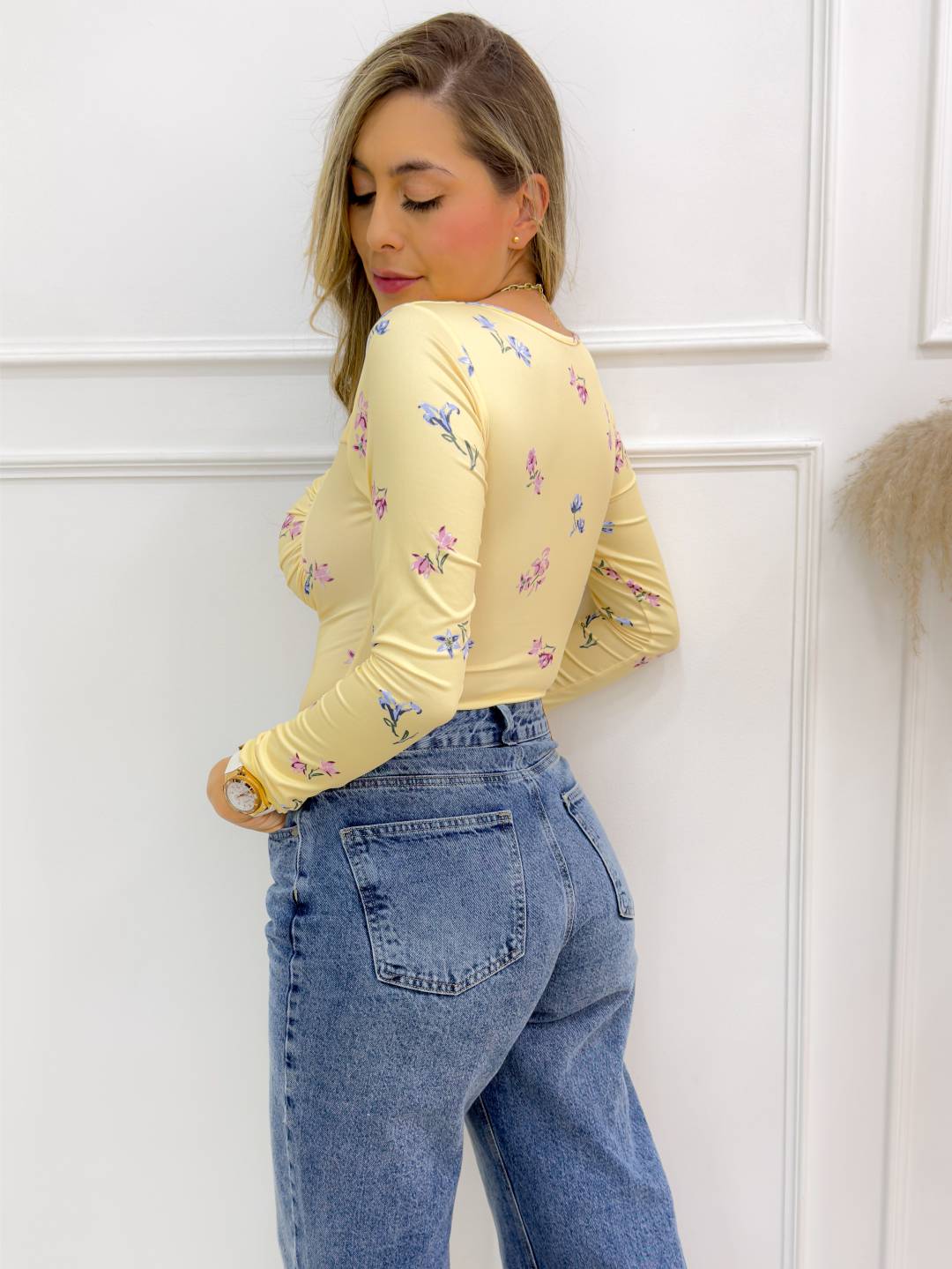El body amarillo floral para mujer es una prenda fresca, femenina y versátil, ideal para looks casuales y de día.
